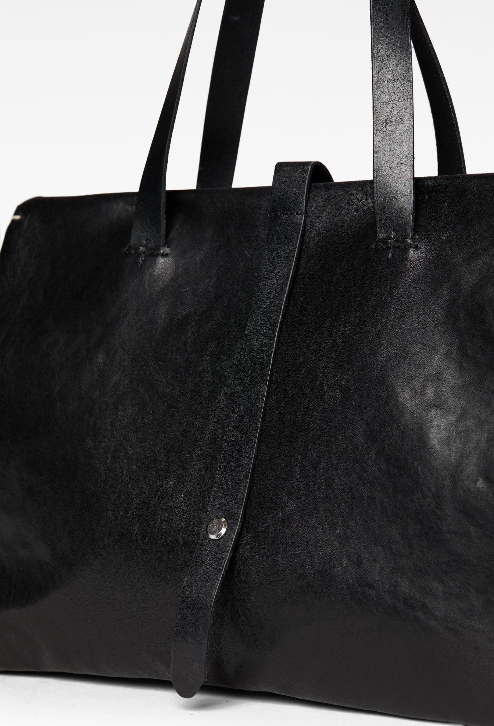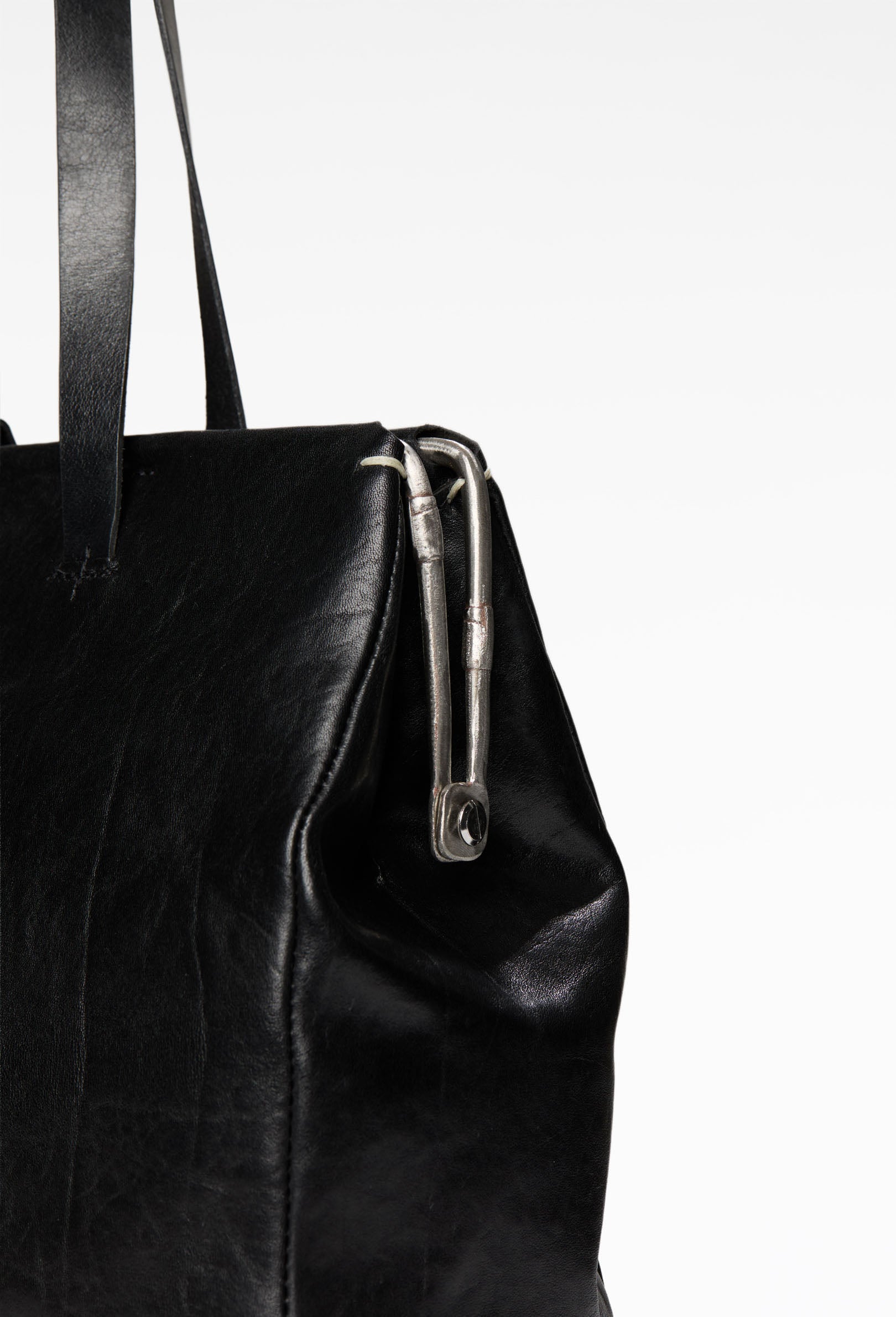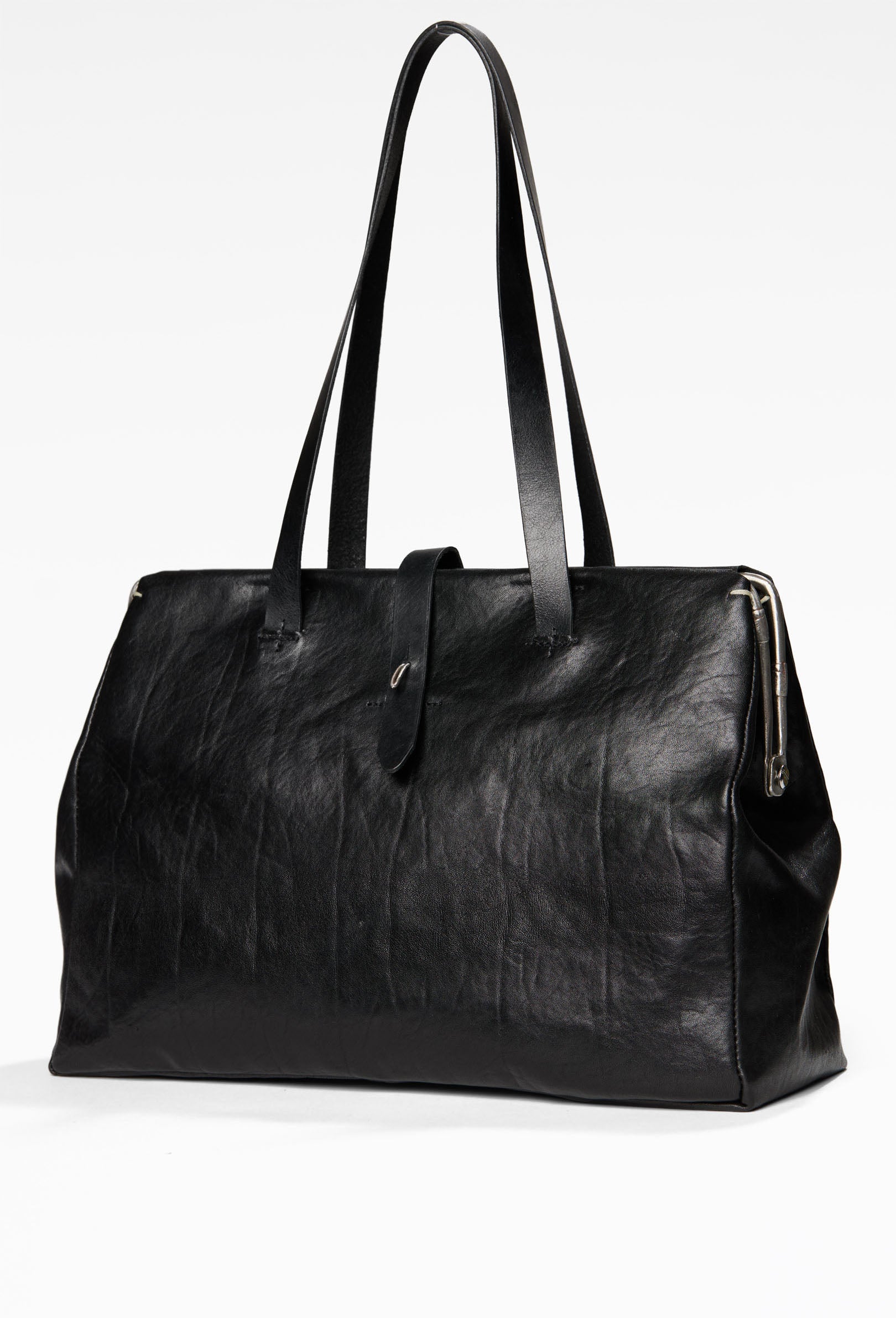 Black doctor-style bag constructed from Italian horse culatta leather with exposed hinged frame. Seeing Gloria release a new bag brings a tear to our teams' eyes. May the doctor that saves us carry this bag...
