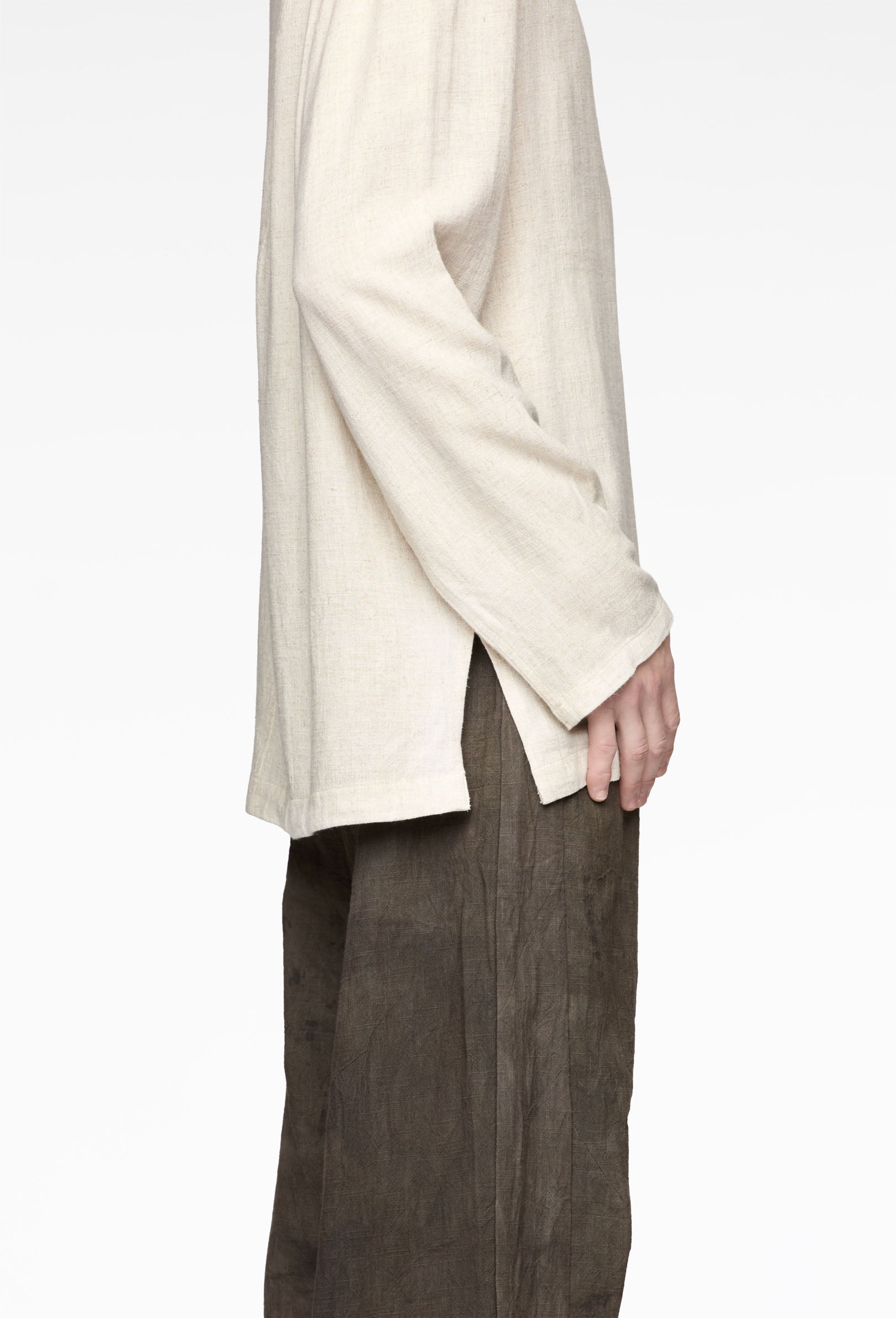 semi-wide fit shirt with mandarin collar