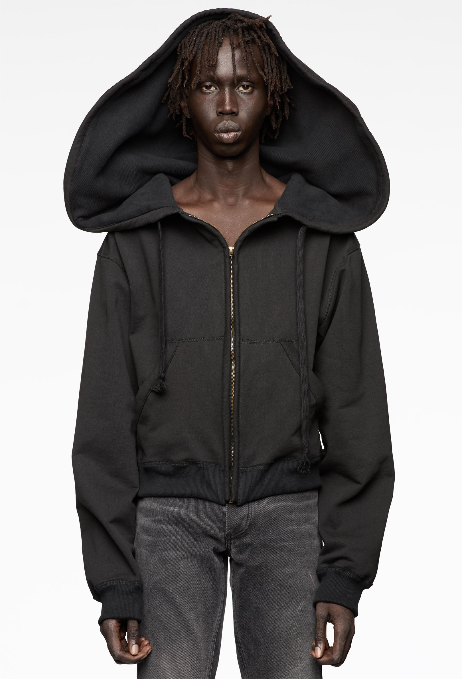 heavy cotton hoodie with oversized hood and cropped silhouette