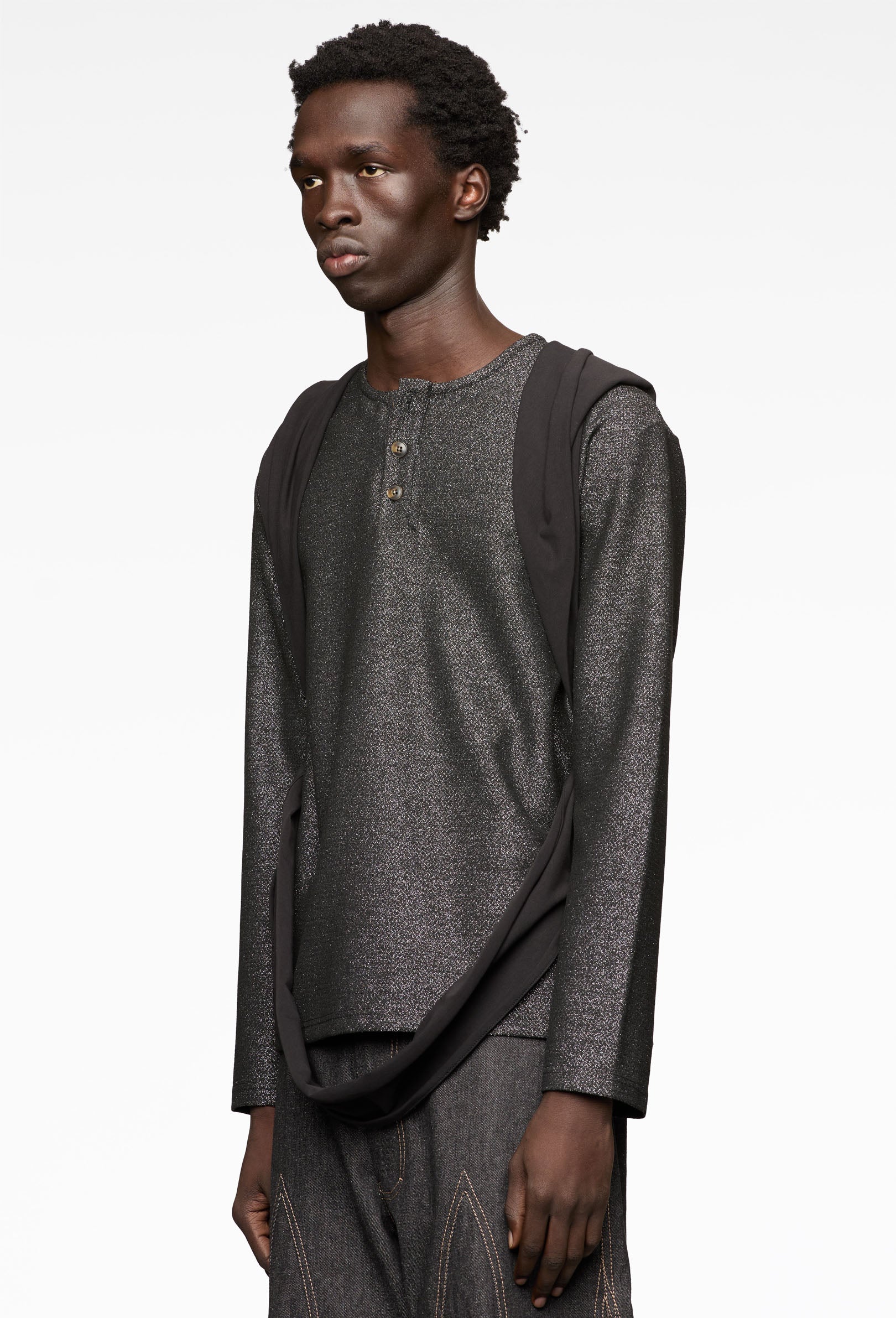 textured Henley top featuring integrated strap detailing and a relaxed silhouette